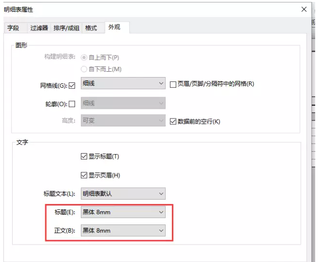 第四步:根据显示要求,对明细表的正文和标题字体进行编辑,以达到需要的效果
