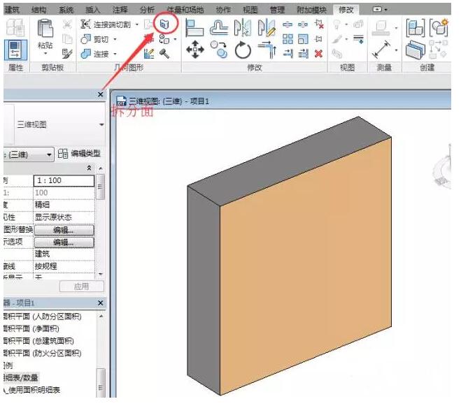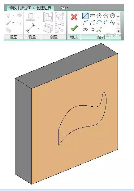 启动“拆分面”命令,选择要拆分的墙面等,然后绘制拆分面域边界——一个封闭的区域边界,也可以利用母面的边界。