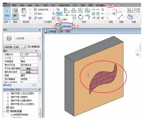 通过“删除填色”工具,可将材质从图元表面删除。步骤如下: