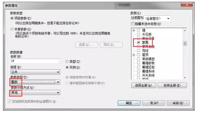 1.在项目参数里添加新的参数,分别命名为“1F、2F、3F……”,具体设置如下图。