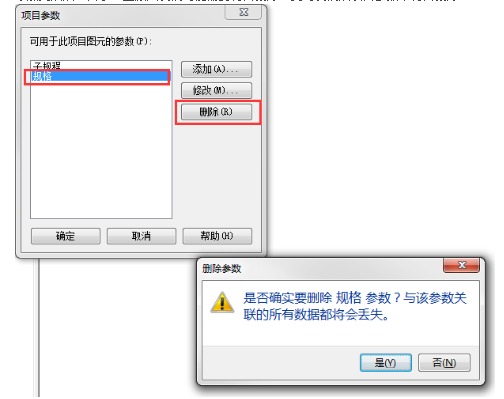 添加完成后,由于一些原因我们可能需要将其删除,此时我们从项目参数中将其删除