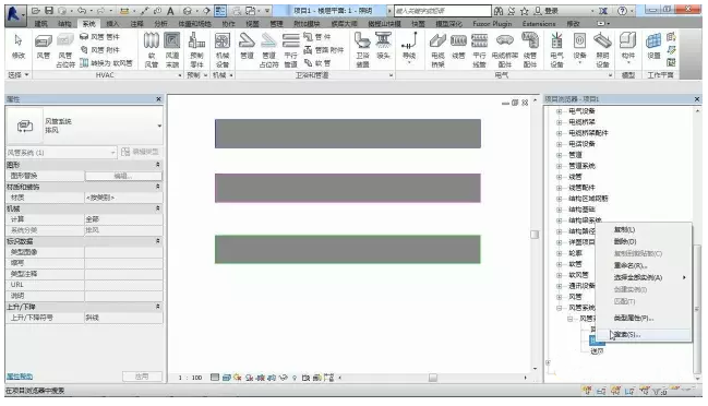 常的revit中默认的风管系统包括三个:回风、排风、送风。但是在日常生活中还会遇到排烟等系统,下面就来讲解怎么创建空调风系统的其它情况。