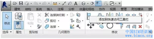 在Revit左上角有一条工具栏–快速访问工具栏,常用的一些命令可以直接在这里进行操作,如果我们自己还有一些经常使用的命令的话,可以添加到这个工具栏里的,具体添加方法如下: