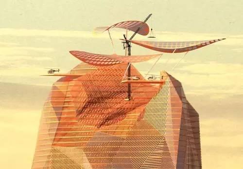 (以下图片为法国某建筑事务所设计的撒哈拉垂直城市的设计方案,建筑设计中包含了酒店、住宅、餐饮配套设施以及气象观测站。)
