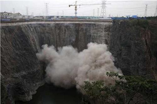 2013年10月21日,经过半年多的建设,由华东建筑设计研究院有限公司负责结构设计的上海天马山世贸深坑酒店进入主体区域的施工。21日,坑壁和坑底岩石进行了首次爆破,由于深坑酒店的主体部分是挂在废弃采石坑的岩壁上,岩石爆破工作将持续开展两个月,为打造世界上首个五星级“深坑酒店”奠定基础。
