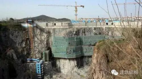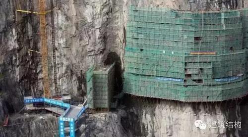 大多数工程中,施工单位要解决的是如何将人员和材料、设备向上运输,而建造深坑酒店,则是解决如何将这些向下送到近80m深的泥泞坑底。 由于坑壁具有弧度,酒店主体结构也被设计成沿坑壁的弧形。使用的是异形钢,它的结构不规则,且处于深坑边缘,运输和吊装难度都很高,有弧度的设计同时也对结构的整体强度增加了要求。