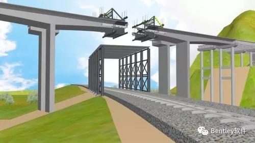 4、施工工序模拟——为保证工程质量,利用MicroStation软件的三维可视化功能对重要的T梁制作工艺和架桥机梁施工进行三维动画模拟。