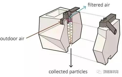会呼吸的砖将被用于建筑正常通风系统的一部分, 它是一种双层砖结构,外部精制砖辅以可提供标准绝缘的内层结构。呼吸砖的设计概念是旋风过滤, 一个来自现代真空吸尘器的理念