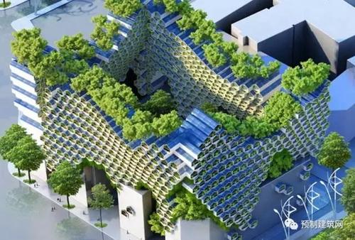 这种竹编网格建筑,可提供蔬菜花园阳台,或者种植果园阳台,从而能够很大程度地为城市温度降温,净化空气质量。