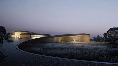 博物馆建筑面积7800平方米由8个互相嵌在一起的圆柱体组成,空间的屋顶蜿蜒而上形成流畅的线条感,屋顶上铺设步道或覆盖草皮形成瞭望城市与公园的露台。