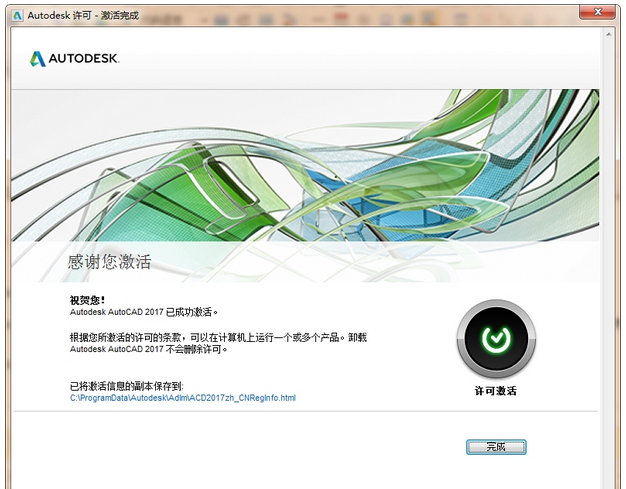 6.将上一步得到的“激活码”复制到AutoCAD 2017激活界面中,点击下一步即可完成激活!
