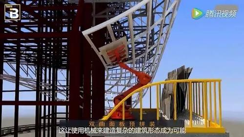 结合建筑信息模型系统(BIM),机械设备通过对金属部件进行浇筑、装配、焊接和打磨等高难度、高精确度的工程步骤后,完成了这一不规则弯曲的复杂构造,这让使用机械来建造复杂的建筑形态成为可能。