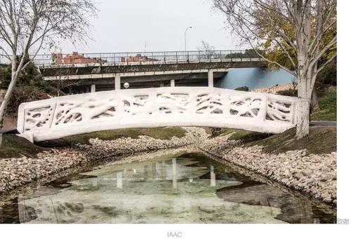 世界上第一座3D打印的行人桥于2016年12月14日在马德里正式对公众开放。 由加泰罗尼亚先进建筑学院(IAAC)领导的一个项目,从一个一年半的概念设计演变而来,该结构横跨在马德里Alcobendas的卡斯蒂利亚-拉曼查公园的一条小溪之上。