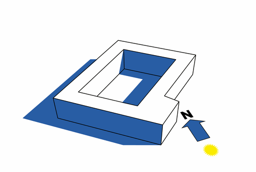 冰山方案并没有遵循总规划中封闭街区的设计,而是形成四个L形翅膀,这样建筑之间的街道就能面向水景开放。为了实现最佳的日照以及湾景视野,建筑体块被切割为锯齿状。[1]