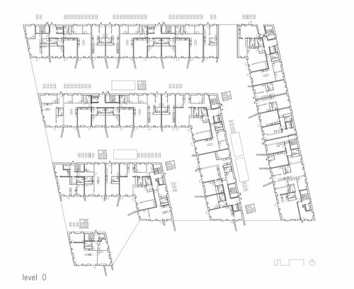 为了达到项目最初定下的密度,设计团队必须协调最初总规划提出的内容,由于这些规定只适用于一定面积内的最高6至7层的建筑。所以该建筑体被设计为最高12层,但保证平均高度在总规划的范围内。