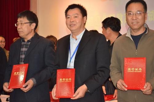 陆泽荣主席(中)获得“2016年度行业教育培训工作先进个人”荣誉证书