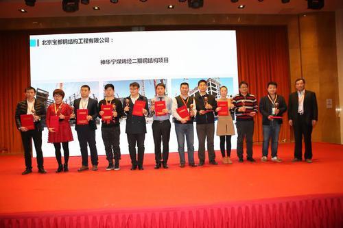 3月24日,北京钢结构行业协会年会颁奖晚会上,北京建谊建筑工程有限公司的“丰台区成寿寺B5地块定向安置房项目”荣获2016年度“北京钢结构金奖”,建谊集团结构总工程师苏磊代表公司上台领取了奖杯和证书。