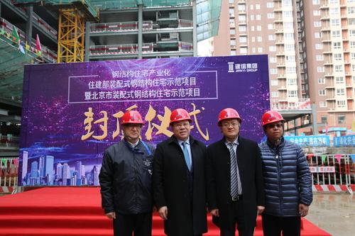 2017年3月25日,随着最后一根钢梁顺利完成吊装,丰台区成寿寺B5地块定向安置房项目喜封金顶,来自同行业专家、兄弟单位、合作伙伴等100多名嘉宾受邀出席仪式共同见证了建谊工程史上的这一里程碑。封顶仪式由建谊集团副总裁鲍雷主持,董事长张鸣致欢迎词并发表了主题演讲。中冶京诚工程技术有限公司教授级高级工程师王立军、中国建筑金属结构协会钢结构分会副会长邓建国分别在仪式中发言,对成寿寺B5定向安置房项目予以高度认可,并对北京市钢结构住宅产业化发展进行了展望。