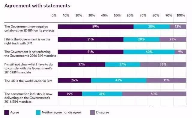 多数调查对象(51%)认为英国政府处于正确的BIM轨道上。