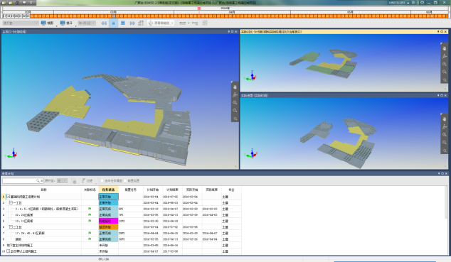 4D进度模拟,找到施工过程盲点,检验进度计划合理性,不断优化施工组织及合理安排人材机需求计划,实时跟踪预警进度信息。