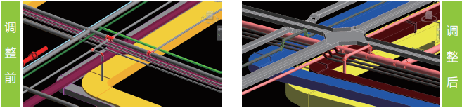 项目BIM团队采用分工建模的方式在Revit软件中建立工程机电模型,导入BIM 审图软件进行碰撞检查,提交设计院优化后进行管线综合排布,共检查碰撞点722条,设计单位进行答复,项目部BIM团队在Revit软件中进行调整,并将调整后的模型交现场施工。根据定稿后的管综模型生成墙体留洞图,指导土建预埋。