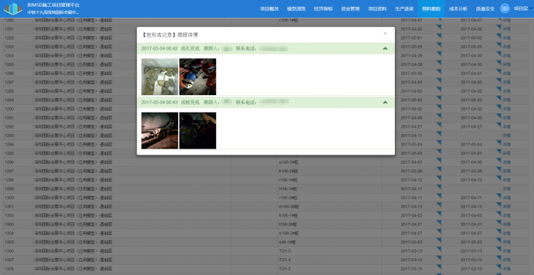工程部的技术人员每天需要对完成的工程量进行台账统计,但是缺乏对现场施工工人派工人数和机械使用数量的系统化统计,缺少对进度照片、资料的存档。通过使用BIM5D手机端记录的数据,工程的计划合同部、物资部不仅可以向上级及时汇报准确的进度,同时掌握了每日各工种人数和机械使用量的汇总信息,形成更为精确的项目成本分析,将该信息作为下次成本例会主要探讨内容,同时也解决了以往对进度照片存档不到位的问题。