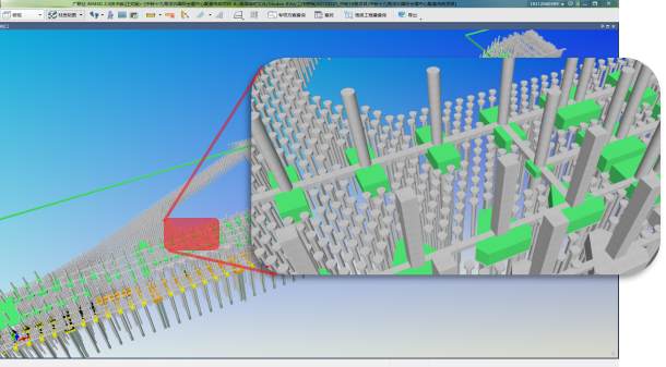 项目部组建了BIM中心,搭建了具有信息参数的模型,对模型进行信息管理应用和维护,加强项目实施过程中资料管理及技术参数的汇总。分阶段开展质量安全、构件二维码的应用。灌注桩、承台物料跟踪、进度照片应用,建筑物可视化交底。特别在对桩基承台施工工序、进度控制,以及承台开挖计划与施工工艺选择等方面起到了重要作用。
