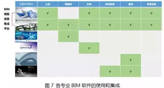 中国尊大厦项目制定了项目建设全生命周期BIM技术应用的基本目标,要求所有参建单位使用BIM技术,通过合同条款(见图5)对参建各方的BIM工作范围进行规定,在实施过程中以《BIM实施导则》(见图6)规范各单位BIM操作及应用内容。BIM离不开软件的应用,在项目初期,项目组对于各专业使用的BIM相关软件进行了收集分析,结果发现各专业仅主要软件使用就多达6种,如何将各专业建模结果搭建在统一平台上也是我们必须解决的重要问题,见图7。目前,国家还没有相应规范,所以在实施过程中我们才会制定该《BIM实施导则》,以便各方在统一的平台上按统一的标准进行操作,也便于该模型用于后期的运维阶段。