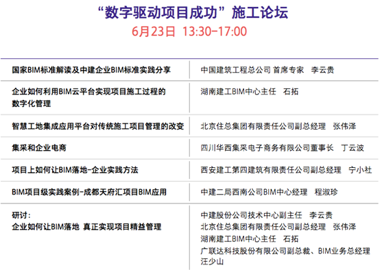 为便于企业交流实际面临的困境和复制学习创新实践经验,峰会设置了“城市更新及既有建筑改造专题论坛”、”数字驱动智慧交易”交易中心论坛、“创新增收赢造未来咨询业论坛”、“数字施工助力项目成功”施工论坛、“产教互促融创未来”教育论坛、“数据领航成本决胜”成本大数据论坛、特色小镇及园区发展新模式专题论坛、数字“建筑&家居”双创生态专题论坛八个专题论坛,并安排了中建科技成都绿色建筑产业园新兴工业园服务中心项目、成都市天府汇项目BIM技术的集成应用项目的实践观摩。