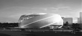 北京某高校新校区体育馆,建筑高度为27.5m,总建筑面积19152m2,占地面积4458m2。建筑主体地上1层,局部3层,主要功能为篮球训练和小型比赛场地。地下两层,主要功能为学生训练使用的游泳馆。主体结构体系为钢筋混凝土框架剪力墙结构加钢网壳屋顶,其首层、2层及地下部分为钢筋混凝土框架-剪力墙结构,局部3层及屋盖为钢结构,屋顶为大跨度双曲面钢结构屋面,如图1所示。