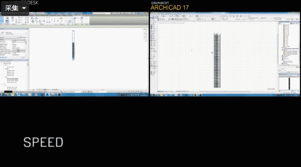 北欧的BIM研究组织BIMEquity,用Revit2014版本和ArchiCAD 17版本做了一个速度对比。他们在同样配置的电脑上,打开同样内容的项目,一个超高层的建筑模型,然后在建筑中间拉一个剖面,看两款软件多久能把剖面绘制完成。
