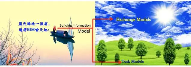 建筑信息模型(Model)可由两部分组成,一部分是工程技术及管理人员完成自己任务工作创建的子任务模型(sub task model),这是实施BIM的动力,是由专业和管理人员使用专业或管理软件完成的,需要落地;另一部分是完成任务需要与他人交互的子模型(sub exchange model),这是BIM的核心,交换必须要通过互联网完成,才能做到信息只需输入电子系统一次,参与各方瞬间就能按需提取,从而达到BIM技术的最高级成熟度,网络在天。