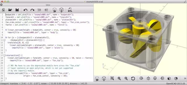 这是一款免费软件,Open SCAD并非交互式建模,而是一个基于程序语言的建模软件。通过对代码的编译实现对模型在屏幕上的渲染。需要一定的编程实现能力。