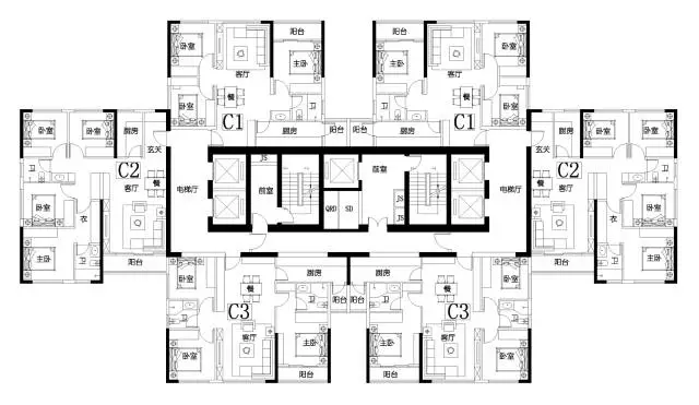 ▲ 混凝土方案标准层(装修后墙厚700mm)