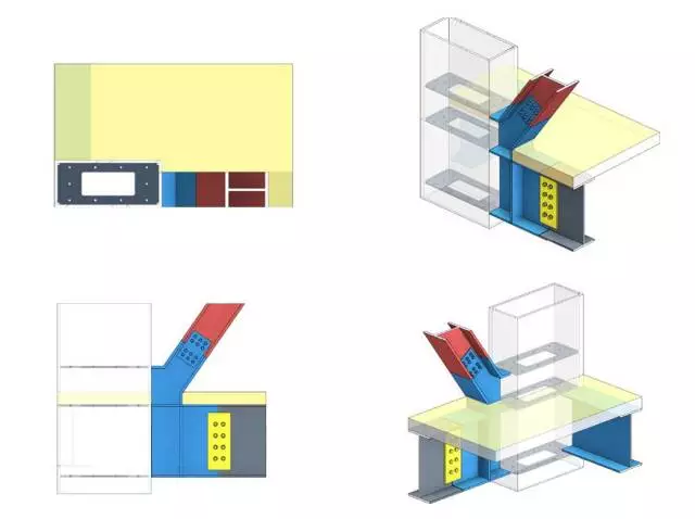在方案设计阶段引入BIM技术,配合结构体系、三板体系、卫生间与阳台等选型工作,为实现钢结构建筑的结构系统、外围护系统、内装系统、设备与管线系统集成一体化设计提供信息化支撑。借助BIM技术,整合钢结构体系与建筑功能之间的关系,优化结构体系与结构布置;选取合适的内外墙体系,细化建筑节点构造,实现建筑功能高标准的要求。
