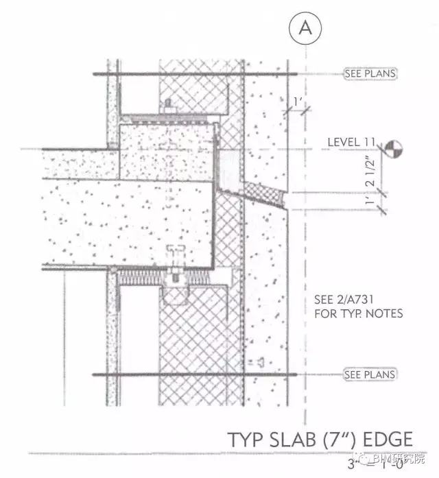 图八 楼板边线的详图显示倾斜的楼板、填平楼板的新顶部以及承载墙板的边缘墙