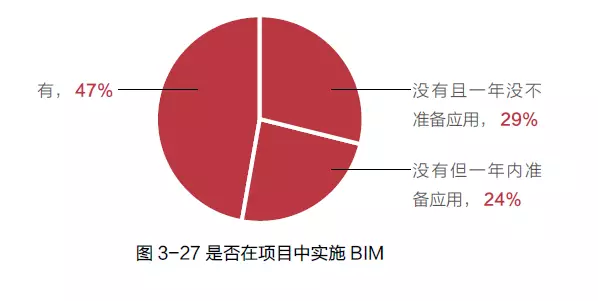 根据鲁班咨询2014 年的调查显示,目前施工企业尝试在项目中应用BIM 技术和准备一年内开始尝试项目中使用BIM 技术的占到了76%(见图3-27)。说明施工企业已经有意识在项目中试点BIM 技术,但如何选择合适的项目也是决定BIM 后续能否在企业中落地开花的关键。