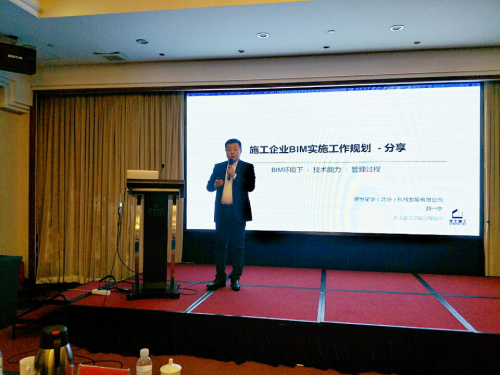 盛世星华(北京)科技发展有限公司总经理,芝士建工学院首席课程研究员赵一中则为施工企业带来了《施工企业“上BIM”实施与管理过程》的分享,赵一中在讲话中谈到,中国60%的施工企业必将在2019年中完成试点项目的BIM应用实践,90%的中国施工企业将在2020年完成基本的BIM应用实践,中国施工企业BIM的井喷正在进行,但是中国现在进行“上BIM”的中国施工企业,已经不必向过去的施工企业一样,都走“投入、探索”的漫长道路,完全可以借助领先企业的成熟经验,学习和建立较为完善的“施工企业BIM工作基本规划”,使更多的企业用较少的投入实现技术进步、甚至是弯道超车。