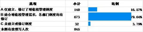 综上可见,营改增政策实施后建筑业企业积极行动,采取不同方式,投入相应的资金和人力,制定或修改相关管理制度,全力应对营改增带来的变化,极为少数的企业未做应对或未投入。