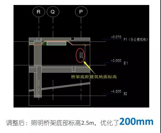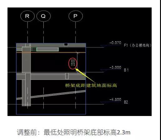 ②优化净空:我们遵循“综合考虑,局部优化”原则 。主要是在车道,走廊等车流、人流较集中部位进行优化。