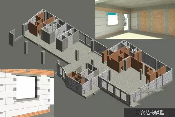 二次结构深化部分:由于传统施工存在浪费严重、质量下降、缺失管控等情况;为此我们采用BIM技术进行二次结构深化,使得总包单位更加切实有效地落实总包管理,为后期的机电、精装提供较好的施工条件,建造优质工程。