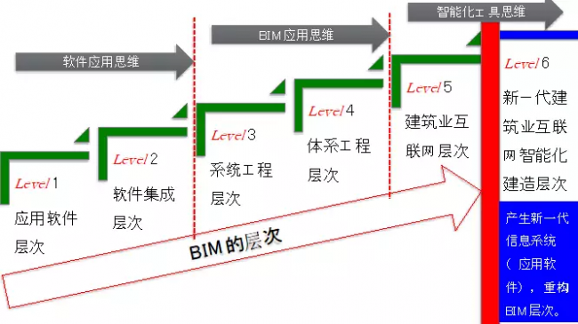 不同的BIM层次代表不同的应用思维(图8),爱因斯坦说过:我们不能在产生问题的层次上去寻找解决的办法,而应当进入更高层次上去思考。