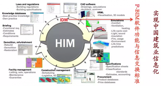 中国BIM发展联盟成立六年来致力于P-BIM技术研究,相对于图5(美国BIM关系图),已经形成并经实践证明了基于HIM的P-BIM技术路线(图9):