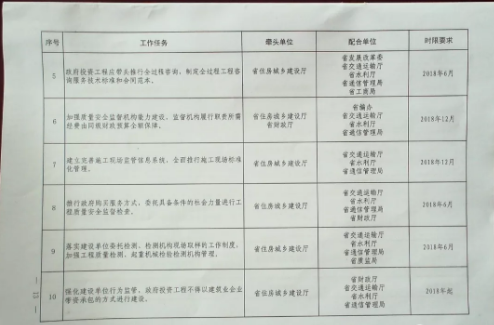 加强工程质量安全监督队伍建设,依据国家相关规定建立健全专门的质量安全监督机构,监督机构履行职能所需经费由同级财政预算全额保障。将各类、各级开发区、工业园区纳入监管范围,实现监管全覆盖。政府可采取购买服务的方式,委托具备条件的社会力量进行工程质量安全监督检查。健全企业负责、政府监管、社会监督的质量安全保障体系。明确监管范围,落实监管责任,推行“双随机、一公开”制度。建立完善施工现场监管信息系统,全面推行施工现场标准化管理。重点加强对涉及公共安全的工程地基基础、主体结构等部位和竣工验收等环节的监督检查。强化对高支模、深基坑、脚手架、起重机械等危险性较大分部分项工程的管理及施工现场消防安全管理。规范重大危险源的报告、管理、方案论证、施工、监测、预警等机制。强化对超过一定规模危险性较大分部分项工程的专家论证,并实施全程跟踪。督促各方主体健全质量安全管控机制,对质量安全管理的关键环节、关键程序和关键岗位,建立统一的责任制度、工作标准。发挥监理单位在质量安全控制中的作用,探索驻厂监理制度,落实监理单位向政府报告质量安全监理情况制度。落实建设单位委托检测、检测机构现场取样工作制度。加强工程质量检测、起重机械检验检测机构管理,严厉打击出具虚假报告等行为。