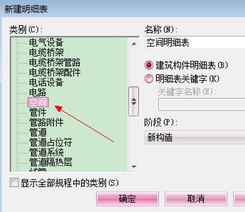 第二种设置方法也是比较方便快速的方法就是更改明细表,打开视图下的明细表选空间类别。如下图: