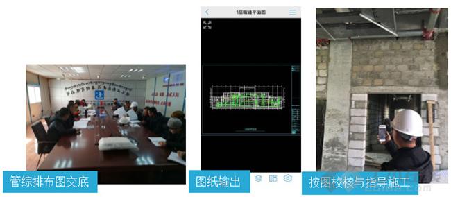 ③将各专业排布图纸导出CAD,并对现场一线施工管理人员进行施工交底。利用手机移动端就可以查看图纸信息指导与校核现场管线排布。