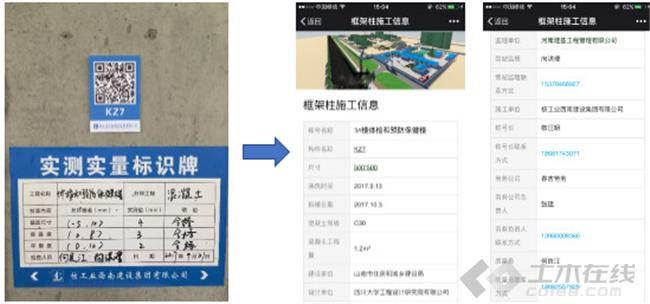 二维码具有储存量大、追踪性高的特性,是信息化管理的重要手段。通过扫描二维码能够获取构件基本信息尺寸、浇筑时间和拆模时间以及安全、质量、进度负责人信息和联系方式,并可以定义构件的进度状态,提高现场信息化管理。