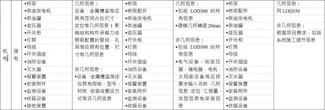 BIM施工模型细度表关于机电中弱电的说明