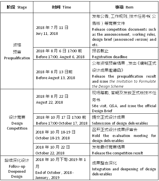 International competition will be adopted to highlight the open, scientific and practical natures of its planning and design. The International Competition will be divided into three stages, namely, “Prequalification”, “Design Competition” and “Follow-up Deepened Design”.