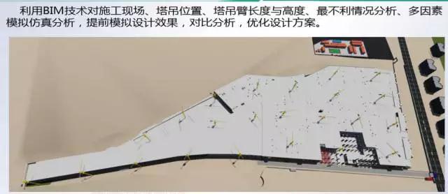 青岛市地铁2号线一期工程辽阳东路车辆基地通过BIM技术建立好的模型对施工平面组织、材料堆场、现场临时建筑及运输通道进行模拟,调整建筑机械(塔吊、施工电梯)等安排。